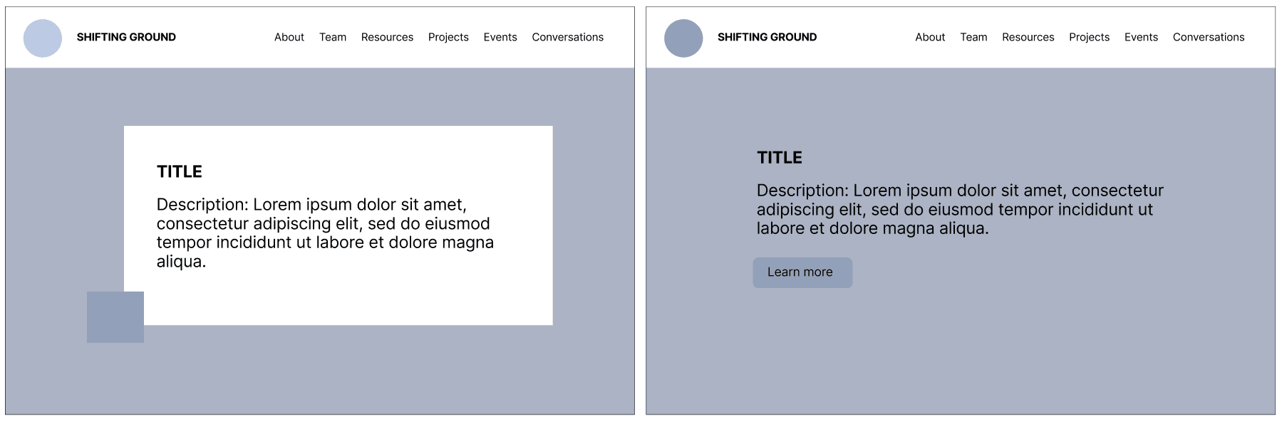 Over the course of 11 months, I improved navigation, content hierarchy, and visual consistency throughout Shifting Ground's site.